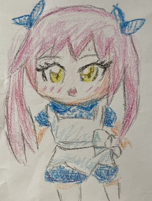 クレヨンでレイちゃん描いたらちっちゃい子が描いたイラストみたいになっちゃった笑 #おめシス #21さいじのおえかき