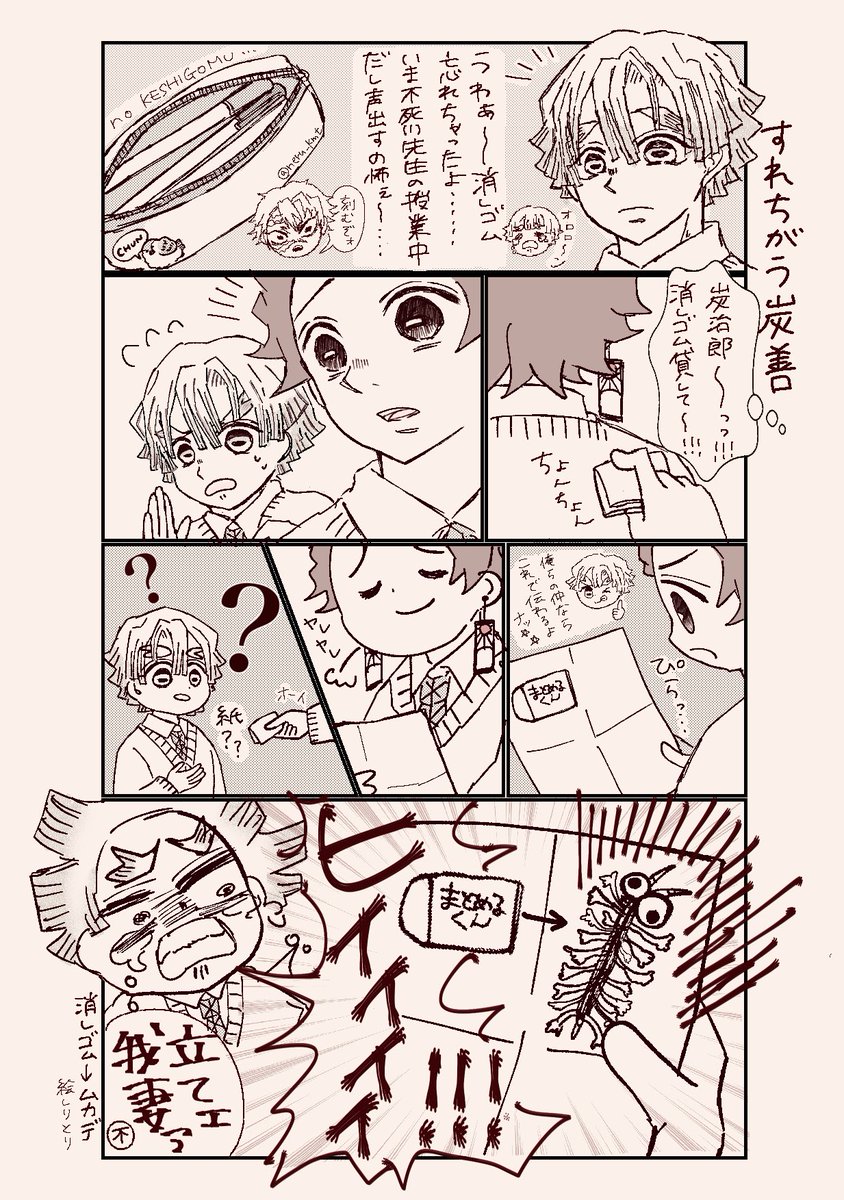 炭善📝 ⚠︎同学年同クラスの席が前後設定 ハム式⚡️も大概な絵を描くけどここではわりとまとも