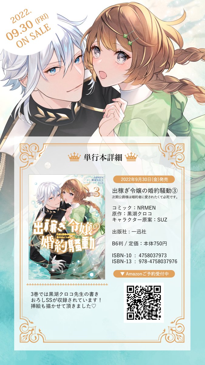【お知らせ💙特典情報】 9月30日(金)にコミカライズ『出稼ぎ令嬢の婚約騒動③』が発売されます!🎉✨今回はなんと…!黒湖先生の書き下ろしSSが収録されていて、私は挿絵を描かせて頂きました!!💖<嬉しい~!🥰 Amazon➡ amazon.co.jp/dp/4758037973 特典一覧もまとめましたので、是非ご覧ください✨