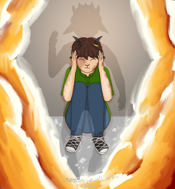 "..he looked to his left and saw Tubbo, curled up in the corner with his eyes firmly shut." {#tubbofanart #dreamsmp #hittingon16}