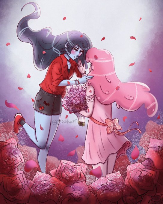 Happy Valentine's Day with Bubbline 💗🖤 #PrincessBubblegum #Marceline #Bubbline #adventuretime #fanart