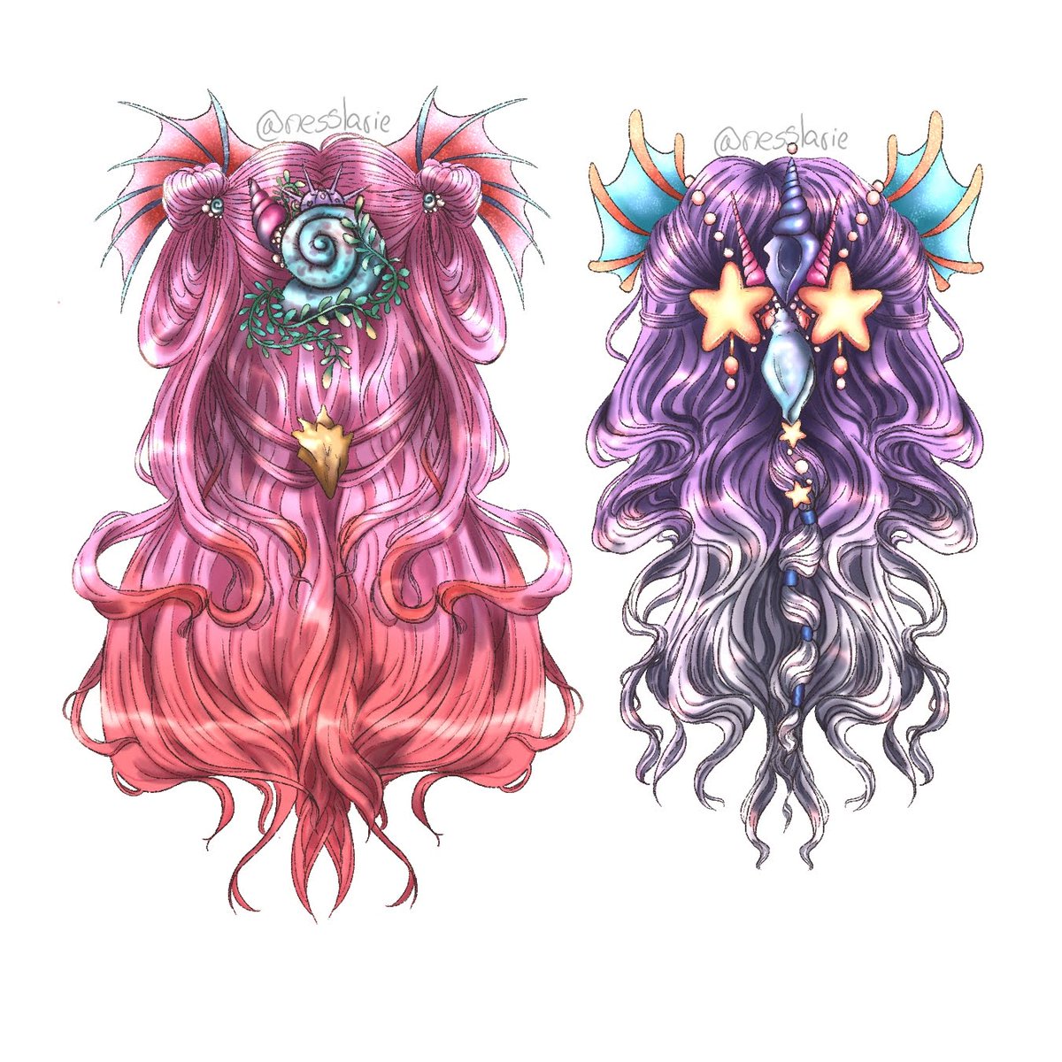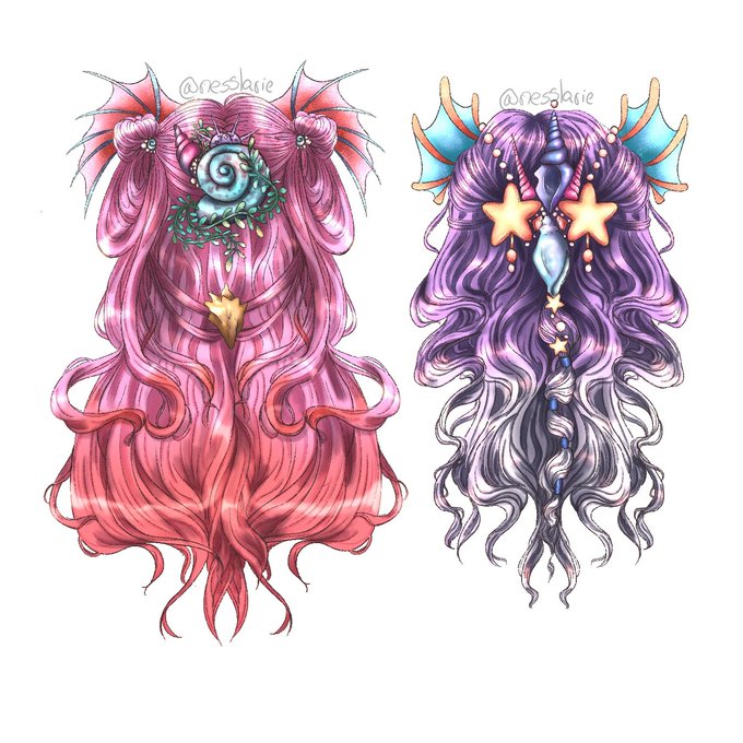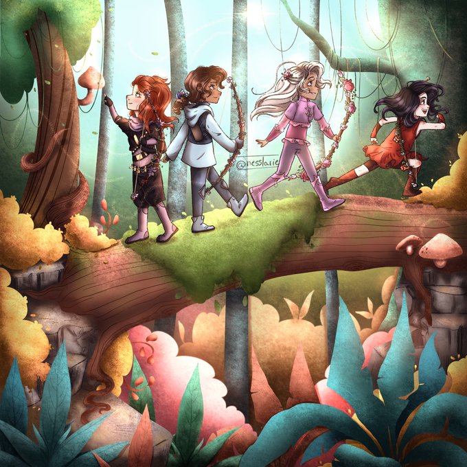 chibi ver. of my OCs Wina, Saskia, Eilwen and Ásta! (left to right) 💜💙🍃🏹🌿💗❤ #illustration #artistontwitter #digitalart