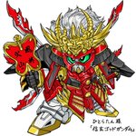 ひとらたんさんのオリSD、「信玄ゴッドガンダム」を描きました。マスクと毛がめちゃカッコ良いですね。戦国武将らしいデザインと張飛ゴッドガンダムの組み合わせもとても合ってると思います。描いてて楽しいパーツがいっぱいでした。ありがとうございました。 twitter.com/AlaiLama_BBW/s…
