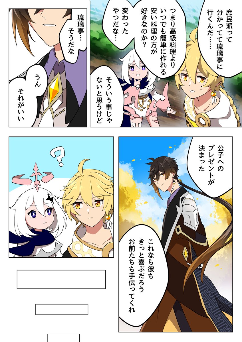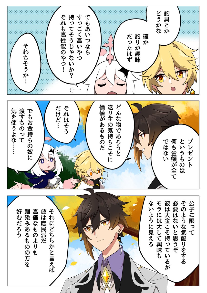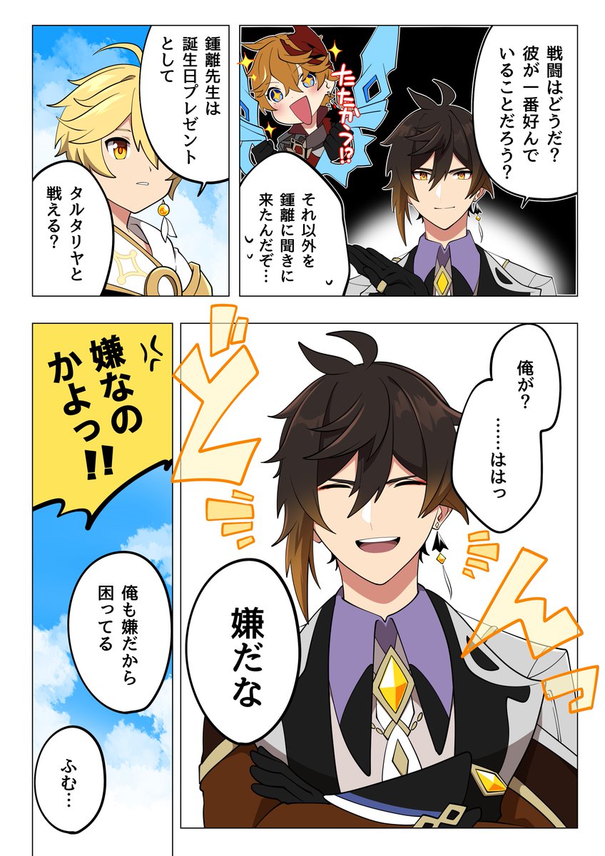 原神のタルタリヤと鍾離先生を中心に 仲良しな2人を描いたり 考察または自己解釈系の話を描いたり 戦闘メインの話を描いたり ひたすら自分の「好き」に素直に漫画描いてます😉 (画像の漫画の続きはリプに続けます) #三億アカウントの中から私を発掘してください