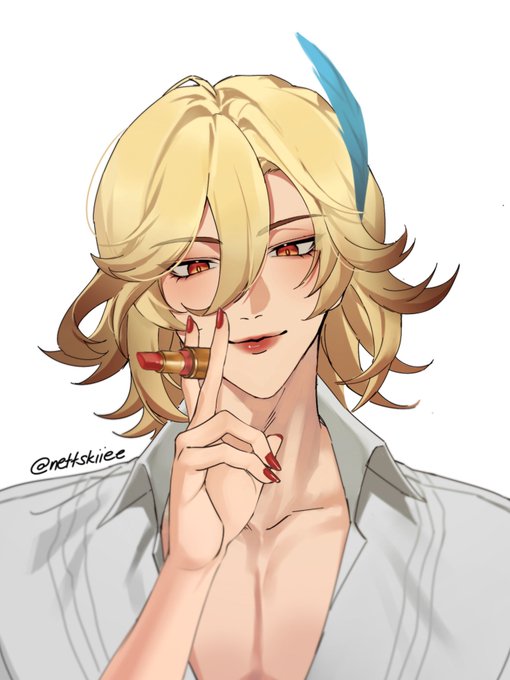 2 55 Can't decide if i should add a lipstick or nah 😗 #wip #kaveh #genshinimpactfanart 23/06/27 03:18