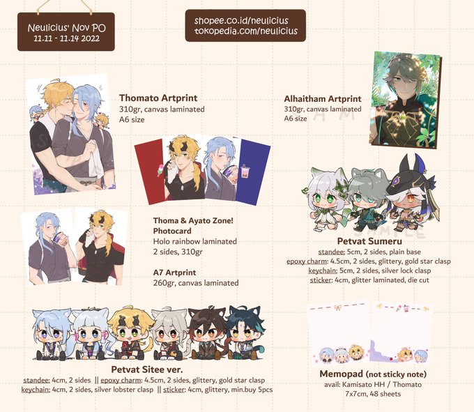 [RT♥️ appreciated] Hai! PO fanmerch bulanan utk #genshin dan nijisanjien udah balik lagi nih ;) ⏰ 11-13 nov 6 sore 🔗 tokopedia.com/neulicius 🔗 shopee.co.id/neulicius thank you & happy shopping♥️
