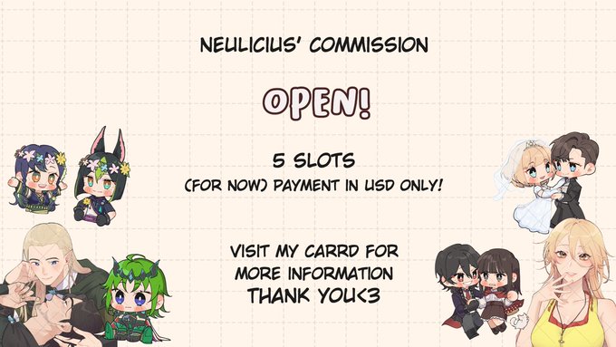 [RT/♥️ are appreciated] Hi, I'm Noi and currently I'm opening #commission! Will accept 5 slots and payment in USD only for now pls visit my carrd for more info! neucomm.carrd.co DM me if you're interested📩 Thank you so much<3 #commissionsopen