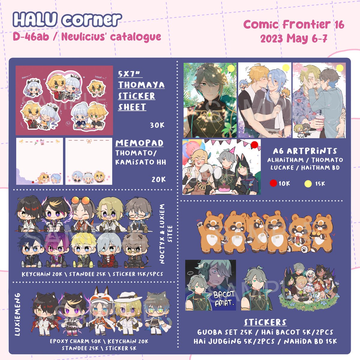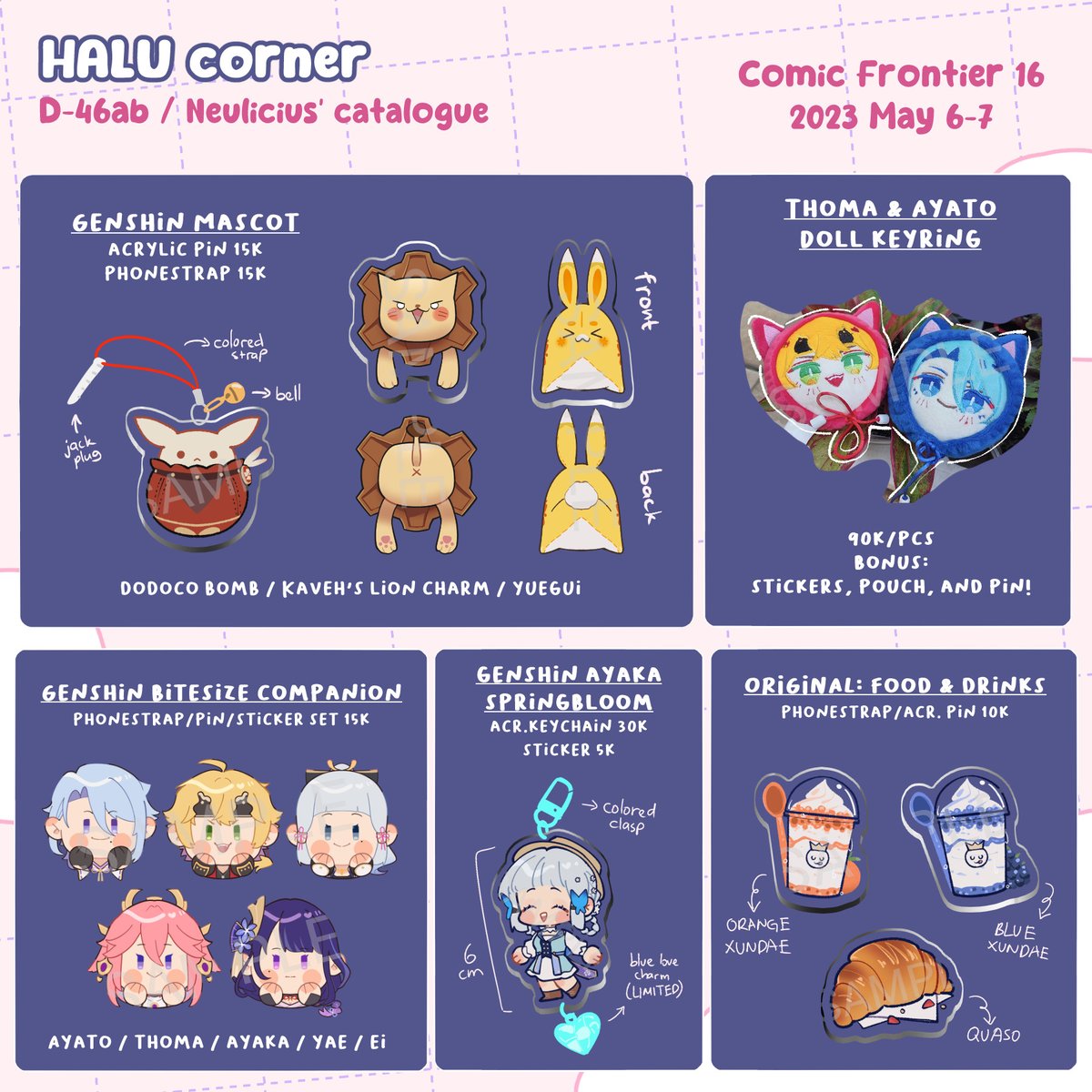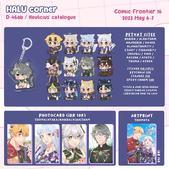 Katalog personal ku utk #Comifuro16 ! 📍 D-46ab HALU Corner ⏰ 6-7 Mei 💰 OTS cash/less (no booking) 🎨#GenshinImpact, Original, NijiEN *produk niji discontinued, jd ini last chance utk beli stoknya Yuk mampir dan jajan yuk gais! See you~