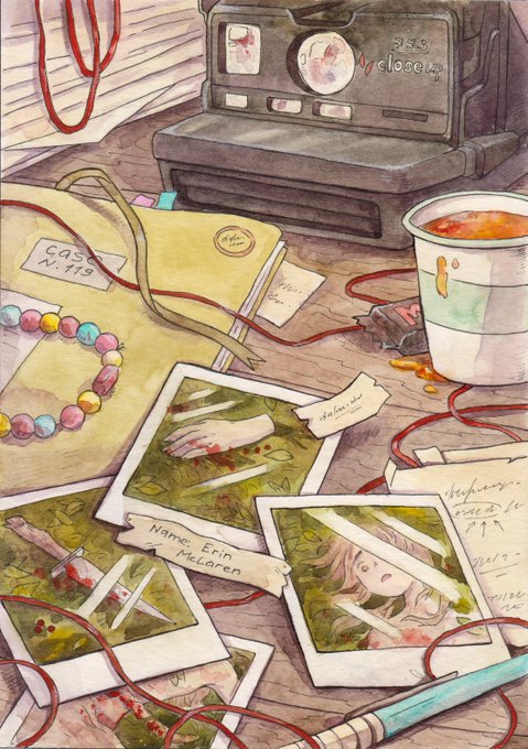 1. Polaroid "Who would have thought that my Friday night wouldn't be spent not sipping beer, but gazing at these polaroid shots and looking for clues? ... I could, because that's my job. " #neudrawtober #drawtober2020