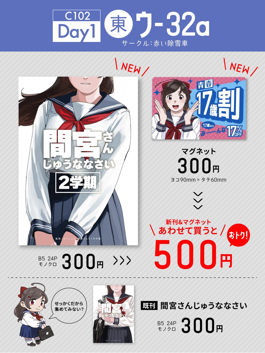 #C102 コミケのお品書きです。新刊とマグネットを一緒に買うとおトクです🉐前作もあるのでこの機会にぜひ。 委託販売もしますのでコミケに来られない方はご利用ください🍈melonbooks.co.jp/detail/detail.…