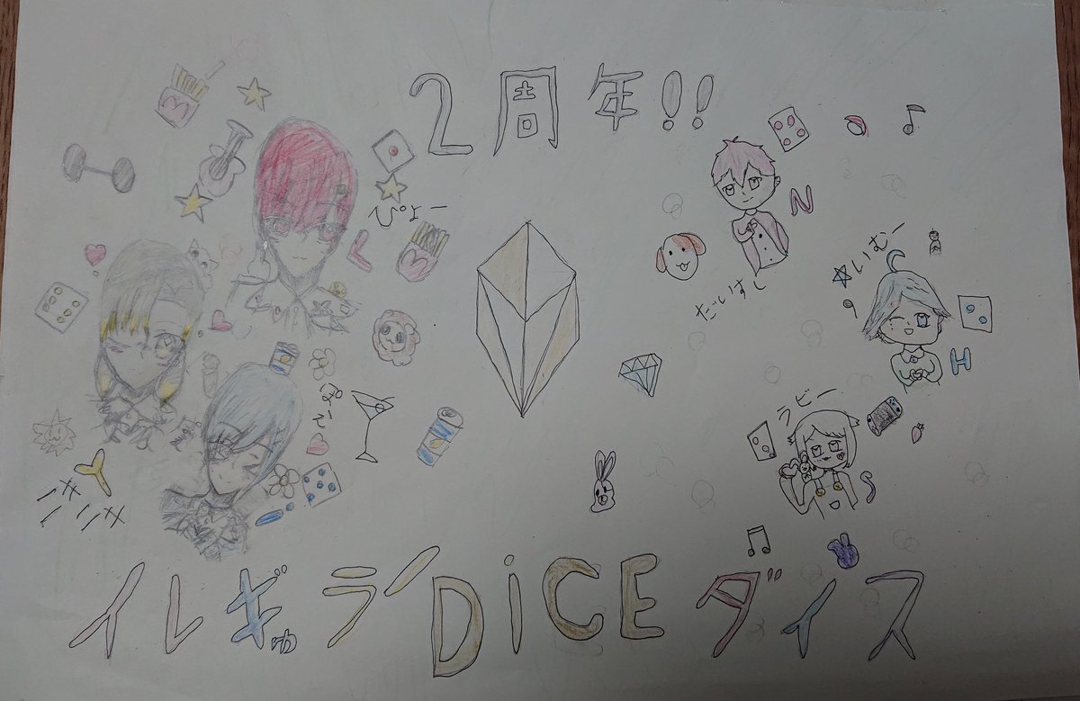 いれいす2周年おめでとうございます ✧*。⸜(* ॑꒳ ॑* )⸝✧*。 夢に向かってひたむきな姿にいつもパワーもらってます✨ どこまでもずっと推していきます! お祝いイラスト ①私 ②娘 ③娘とお友達の合作(掲載許可済) #いれいすあーと #いれいす2周年おめでとう #いれいす24時間リレー生放送