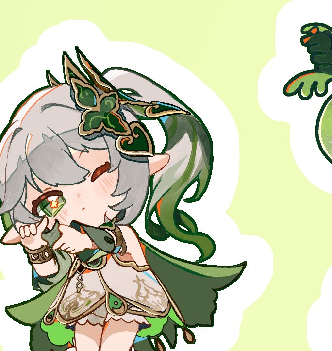 今作ってるナヒちゃのグッズ絵可愛くかけたからちょっとだけ見て見てしちゃお! 1枚目は箔押しカード、2、3枚目はシールセット予定💪✨