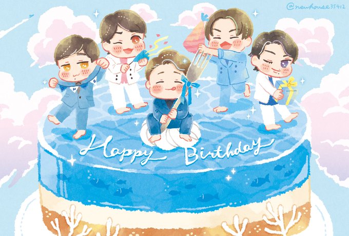 遅刻してしまいましたが‥! お〜のさんお誕生日おめでとうございます🐟💙 海のようなゼリーケーキでお祝い🏖 穏やかに健やかに過ごせていますように☁️