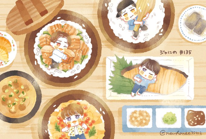 ジャにのちゃんねる2周年! おめでとうございます🎉✨ いつもゆる〜く楽しい動画に癒されています‥☺️ ごはん企画が特に好きなので、その系統の過去絵まとめ🍙