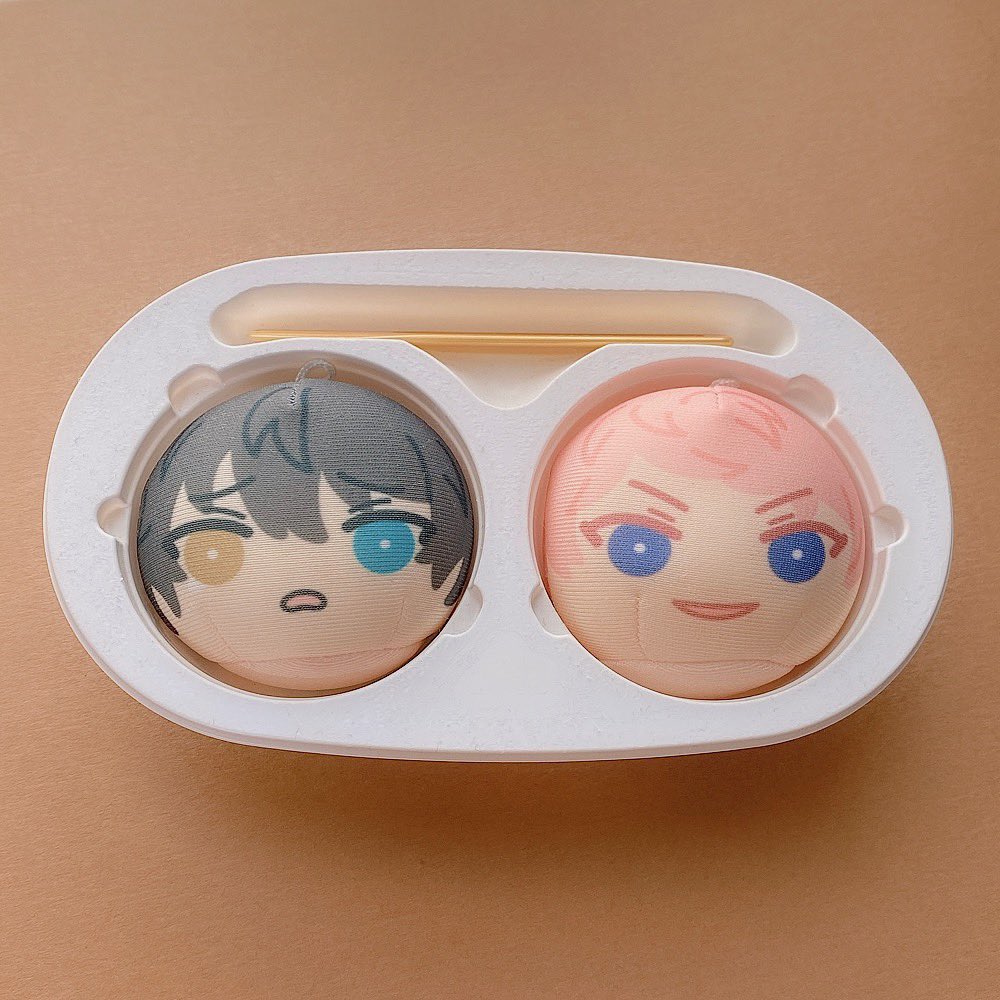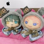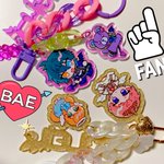 明日のお品書きですギリギリに失礼します… グッズの写真が間に合わなさそうなのでこんな感じというのだけ先に…おもちゃみたいなジャラジャラキーチェーンです。ピンクオーロラとゴールドのアクリルにシャルムとソレイユ😈👼 無配は春の午辰!キラキラのポスカです🌸