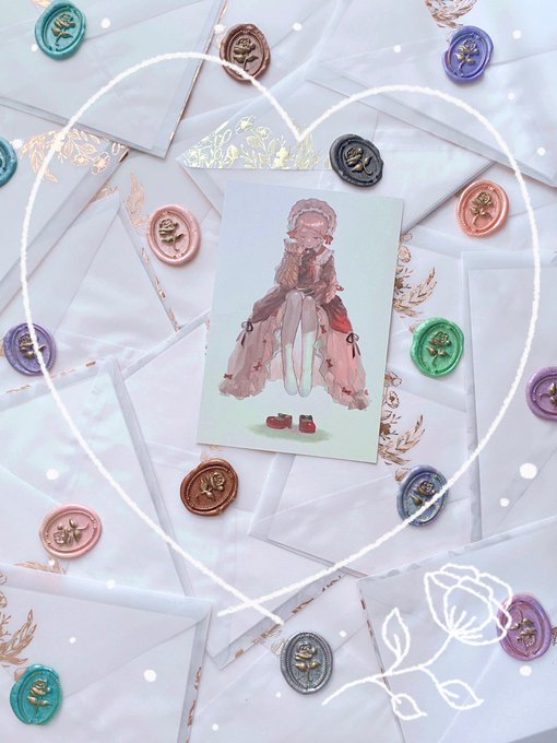 30 194 宗くんとマドモアゼル ポストカード🌷 お気に入りの過去絵でポストカード作りました。パールや偏光の紙を使用、トレペ封筒に入れてお渡しします。 シーリングスタンプも全て自分で押したので、ちょっと拙いですが見ていただけたら嬉しいです…! 3枚セット100円 /賛美歌集 23/03/18 11:49