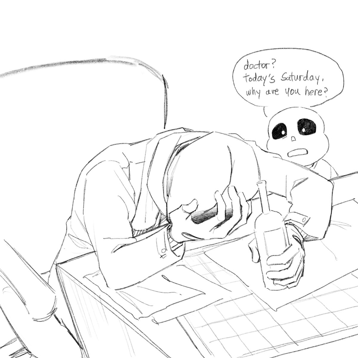 앗 이거.. 복잡하게 얽힌 천장의 이름모를 기계들과 내리누르는 가스터의 손으로 답답하고 무겁고 기분나쁜?? 그런거 그리고싶엇어