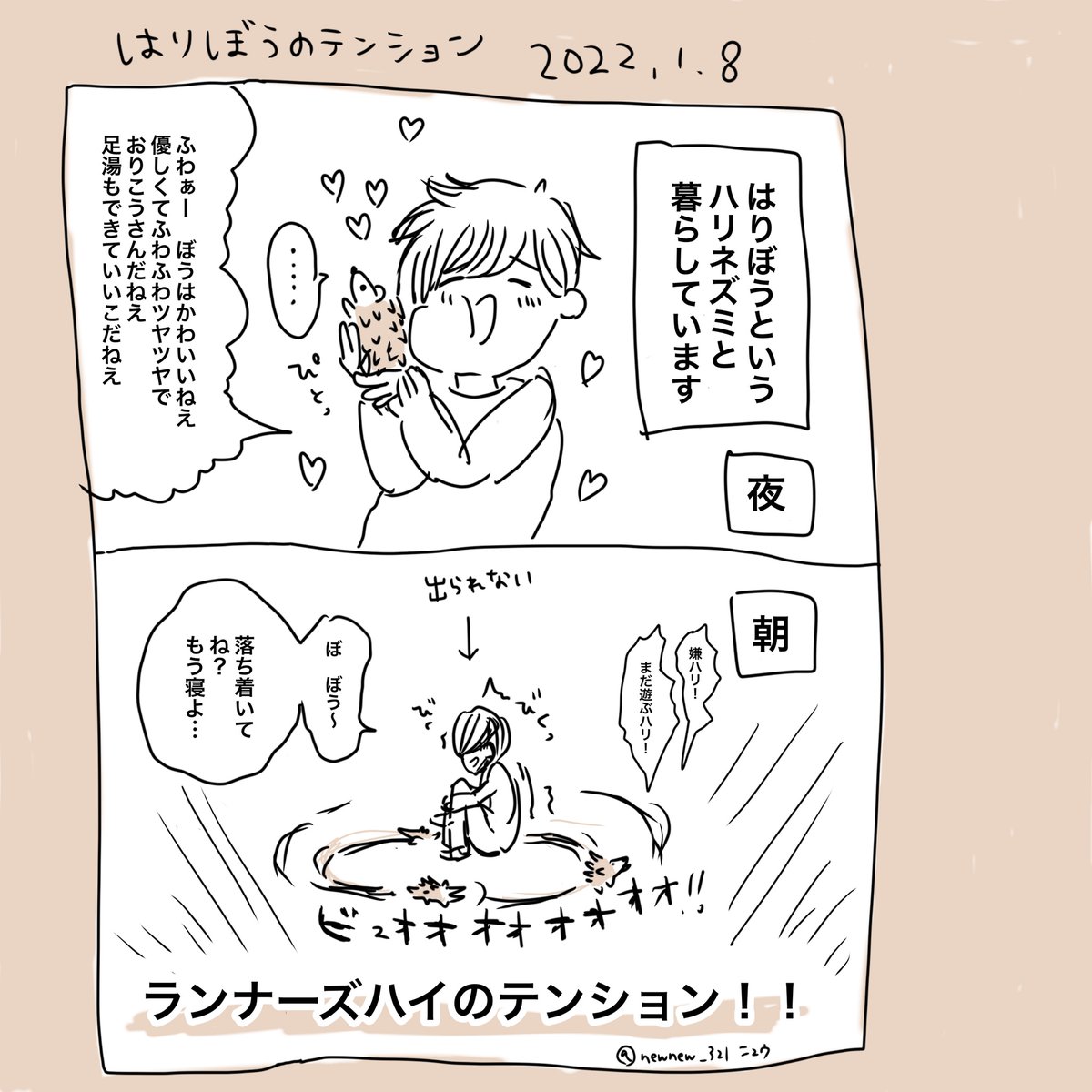 0 1 2022年1月8日の日記 うちのハリネズミは朝テンションが高い #コミックエッセイ #絵日記 #漫画が読めるハッシュタグ #ハリネズミの漫画 22/01/22 17:36