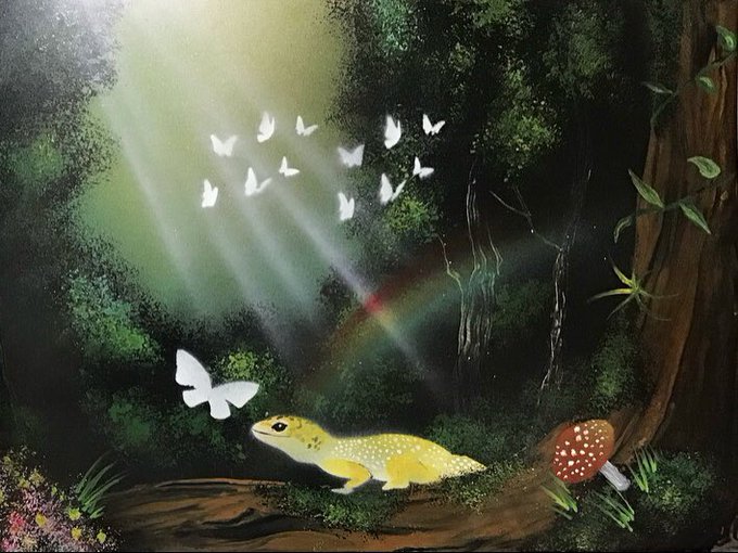 【スプレーアートで描いてみたシリーズ】 森のレオパ やっとスプレーアートシリーズで割と納得いくの描けた….ヤモリ系なら割と描けることに気づいた🎨 #爬虫類 #爬虫類好きと繋がりたい #絵 #イラスト #絵描き #絵描きさんとつながりたい #アナログ画 #ヒョウモントカゲモドキ