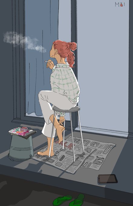 7 16 外に出たいですね。自宅待機。 ベランダはだめですか。 #イラスト好きさんと繋がりたい #イラスト基地 #自宅 #家 20/04/05 11:34
