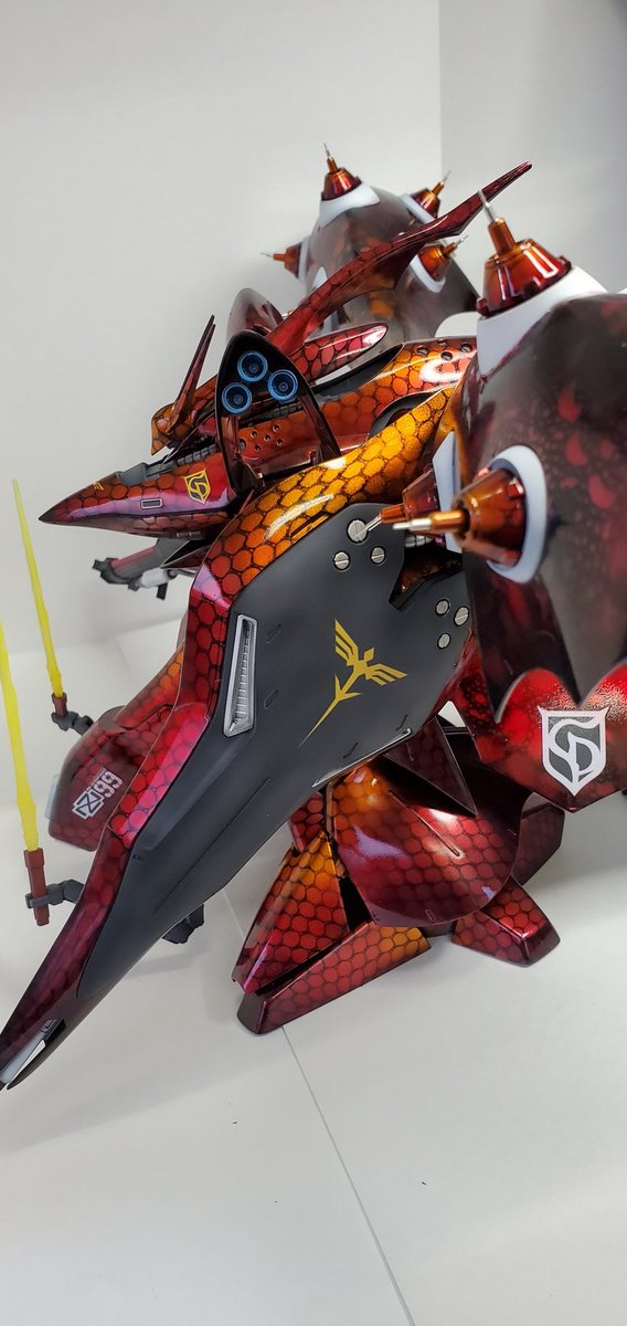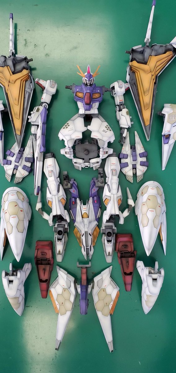 みぅ殿(@miu1213miudp )殿からのPGフルバーニアン生活最終日 フルバーニアンを全塗装にてロールアウトでございます! さすが最多パーツのボリュームでした! みぅ殿、父殿ありがとうございましたっ (`・ω・)ゞ #ガンプラ #ガンプラの画像貼るとRTされると聞いて #ガンプラ好きと繋がりたい