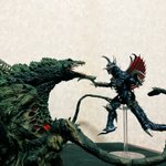 【真島に影響を受けたガイガン】 バランス取らねーとなぁ‼︎ #フィギュア撮影友の会 #夜のフィギュア撮影会 #ゴジラ #ガンプラ #シャア専用ザク #ガイガン #SHモンスターアーツ #SHMonsterArts