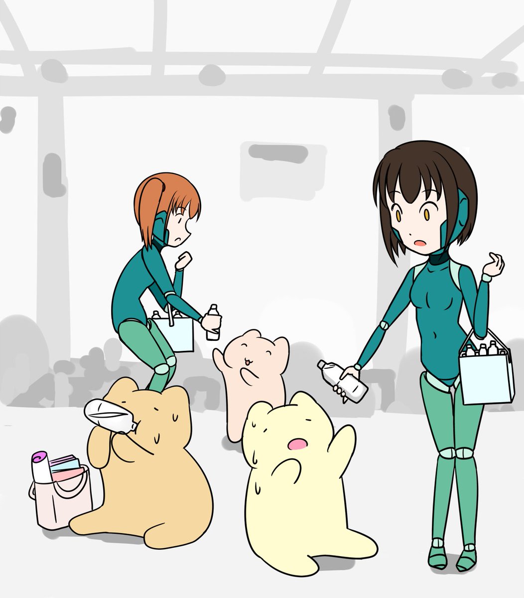 ピクシブで優と玲のアンケートをとったところ、優が人気だったのでpixiv.net/artworks/94445…、記念に仕事中の優を描いてみました。ガイドヒューマロイドとして街中で案内などを行っています。 #ヒューマロイド