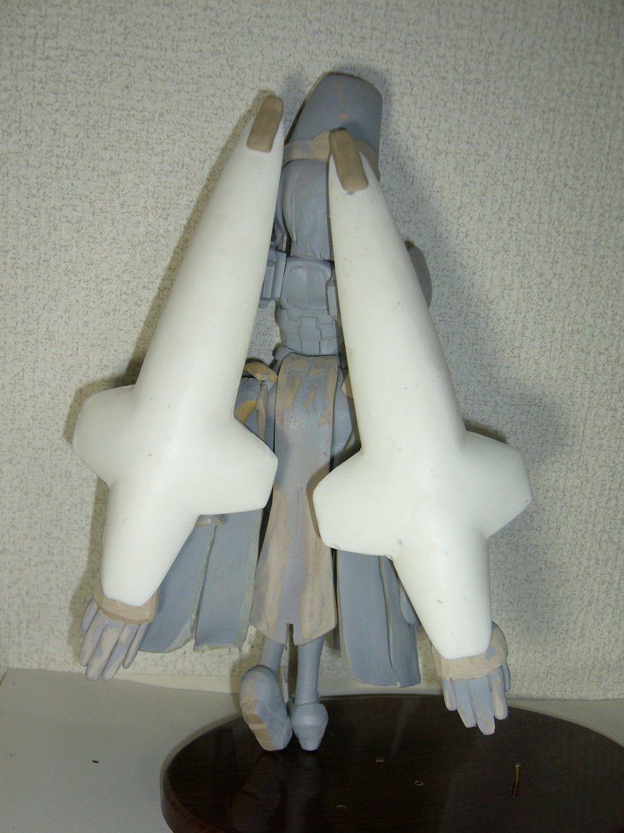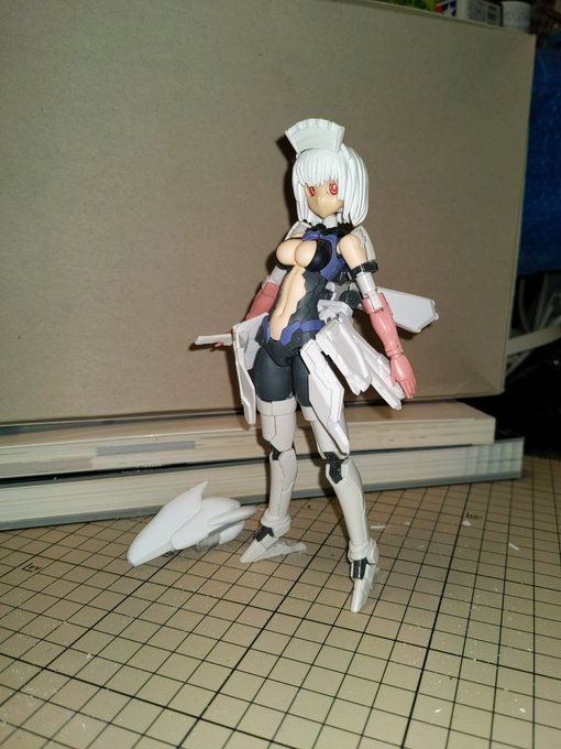ワカモ組み上がり……なんだけど、傘からぶら下がってる奴の塗装する向きを間違えて当初の予定とは違う形でゴールになった…… ヘイローの固定はこれから考えます #ブルアカ #WF2023S