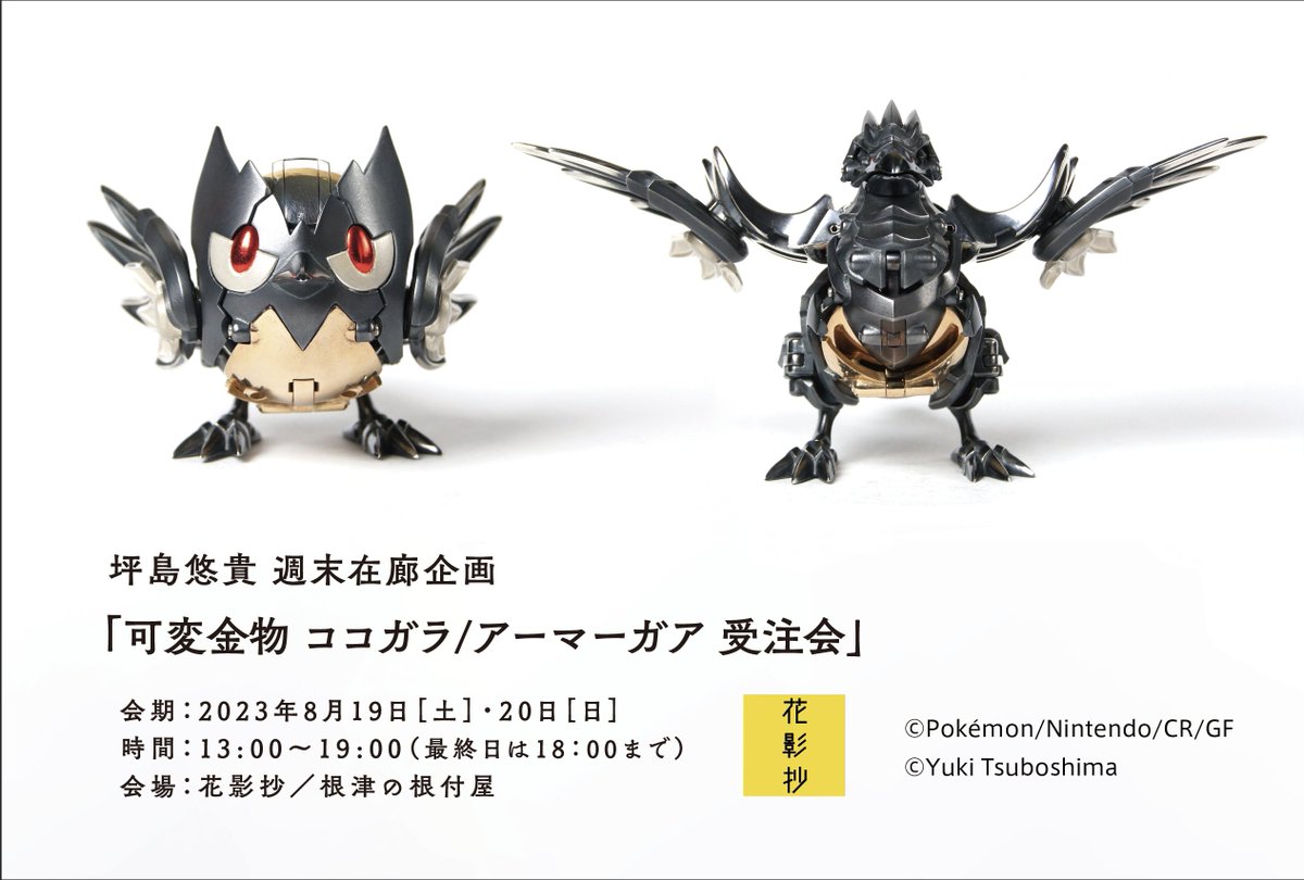坪島悠貴 週末在廊企画「可変金物 ココガラ/アーマーガア 受注会」 会期:2023年8月19日(土)・20日(日) 時間:13:00〜19:00(最終日は18:00まで) 会場:花影抄/根津の根付屋 詳細は、以下のブログページにてご案内しています。 hanakagesho.blog17.fc2.com/blog-entry-278…