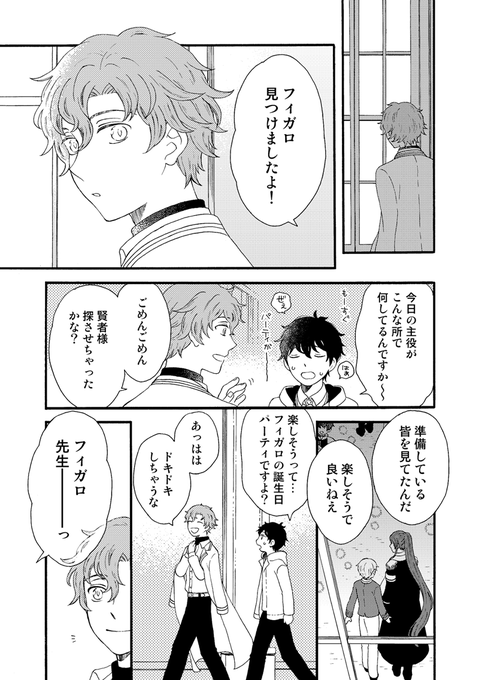 遅刻です…フィガロ先生お誕生日おめでとう…ございました…!(カドスト未読時に描いたのでどこか夢のフィガロ誕生日とでも思って頂けたら…) #まほやく_FA #フィガロ誕生祭2020