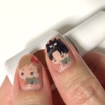 マステ切って貼っただけの即席痛ネイル💅雑なので雰囲気だけ楽しめればいいかな〜って感じです😂😂 2枚目は以前オンリーに行った時の(ベースが青だから誤魔化しやすかった)