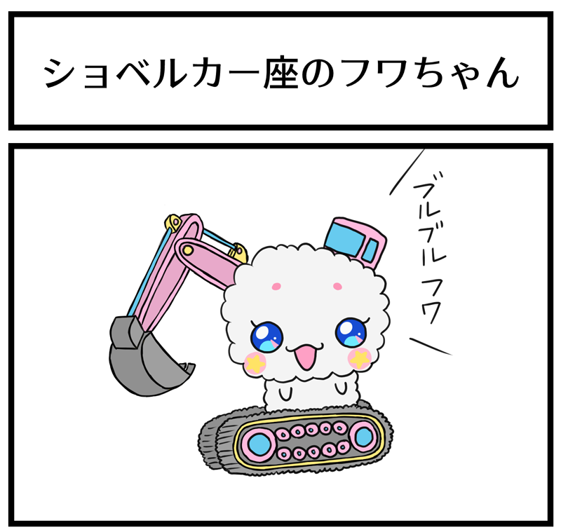 #フワの日 過去絵(1/3) ・ショベルカー座のフワちゃん ・バスボム6つ入れるフワちゃん ・成長して交通系ICカードが使えるようになったフワちゃん ・フワープを使いこなして横着するフワちゃん