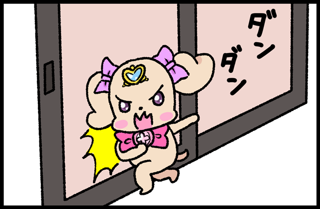 草野球に呼んで貰えて嬉しくて買ったグローブにグーをバンバンして明日を待つプリキュアの妖精のピッギーちゃん(仮)
