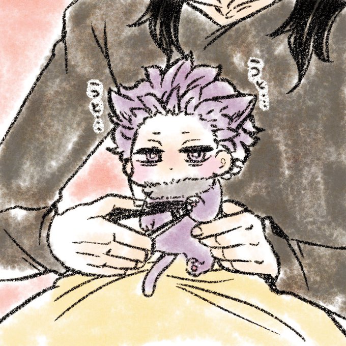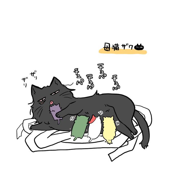 ※動物パロ注意 ※クソ妄想絵 しもみさんのザワ🐈⬛が可愛すぎて可愛いすぎて…辛抱たまらず便乗して描きました。 毛でボリュームあるけど実はガリッガリだったらいい。 乳で育てるタイプの♂です。