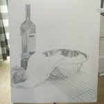 3 40 #GWお絵かき合宿 ペンギンちゃんの服を着たイカちゃんと課題のデッサンです! (インクの色が血みたいになっちゃった…) 20/05/03 15:55