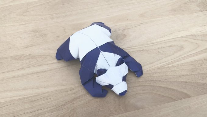 折り紙でパンダを折りました 切らずに正方形一枚から