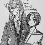 0 9 遅くなりましたが、明けましておめでとうございます🎉 描き初めはやっぱり看板コンビの竜華さんと渚! 今年も創作っ子共々よろしくお願いします! #隠密エージェント 21/01/03 22:56