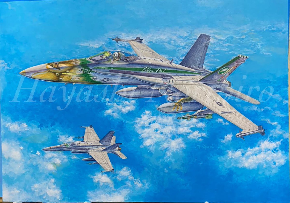 #三億アカウントの中から私を発掘してください アクリル絵の具で飛行機を描いています。