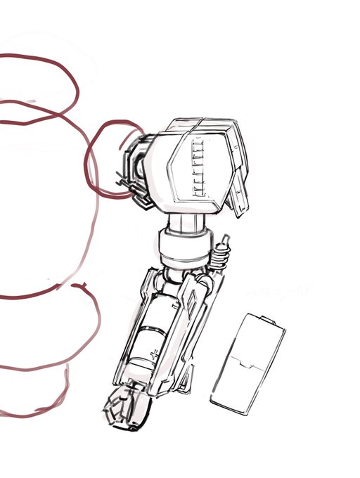 休憩中にオリジナルロボを落書きしてます。 テーマは、電池! #イラスト
