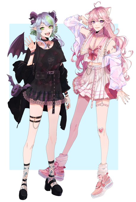dark and pastel 🖤🤍 drew some alt fashion for these cute gals #lichcraft #nyanart #niamonicollection