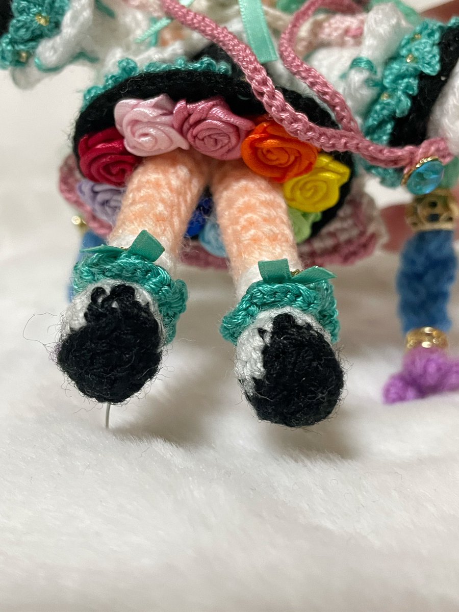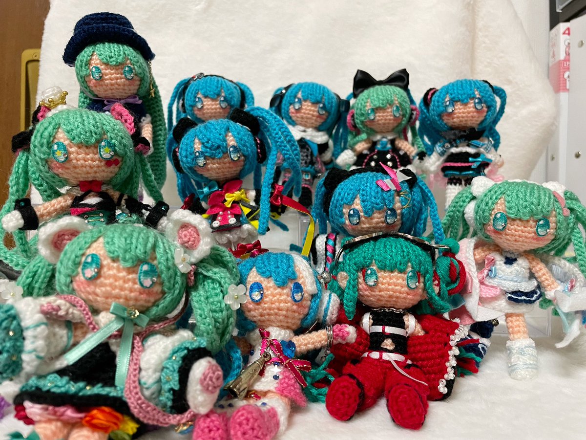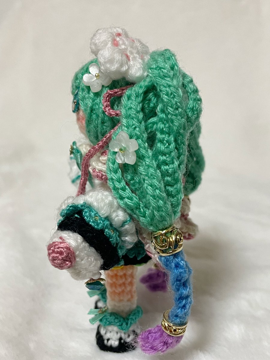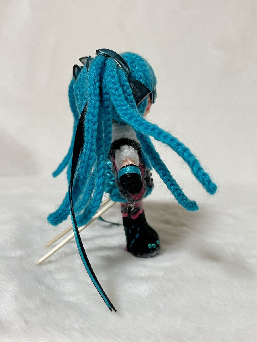 歴代マジカルミライの初音ミクを全員編む企画 マジミラ2015を編みました🧶 靴のヒールはちょっと再現できなかったので作ってません。申し訳ございません(´・ω・`) 後ろのフリルは1から作りました。1番頑張った部分です。 #マジカルミライ2015 #初音ミク #あみぐるみ