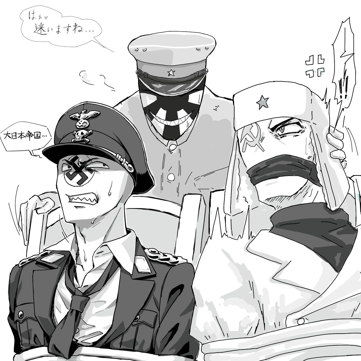 #CountryHumans #カントリーヒューマンズ クロ鰐さん(@friday_613)と絵茶で漫画を描きました。ナチ日とソ日BLネタです。 いやあ楽しかった!クロ鰐さん、お付き合い下さりありがとうございました。