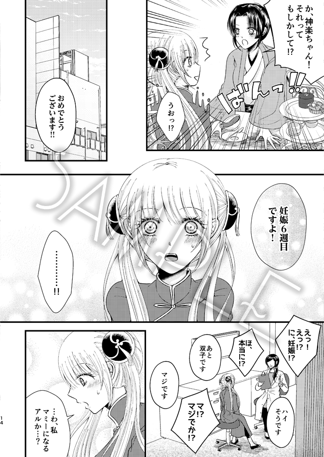 【12/12 兎のヨメ入り】新刊サンプル① ■La Vie en Rose / A5 / 88P pixiv.net/artworks/94261… 18歳14歳に出会った沖田と神楽が、結婚~妊娠~出産を経て家族になっていく12年間のお話。 ※注意:妊娠/出産ネタを含みます ※捏造子ども(双子)が出てきます。女の子の名前だけ神流と名付けてます