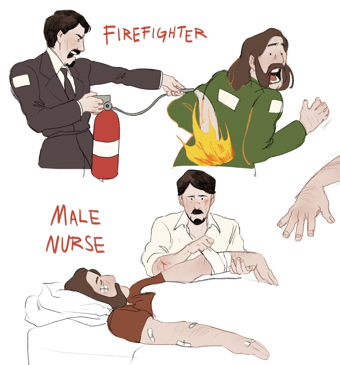 “ESPRIT DE CORPS - Okay. I was clearly wrong. He is a firefighter, male nurse, animal control agent — something of that kind. Not a cop.” #DiscoElysium