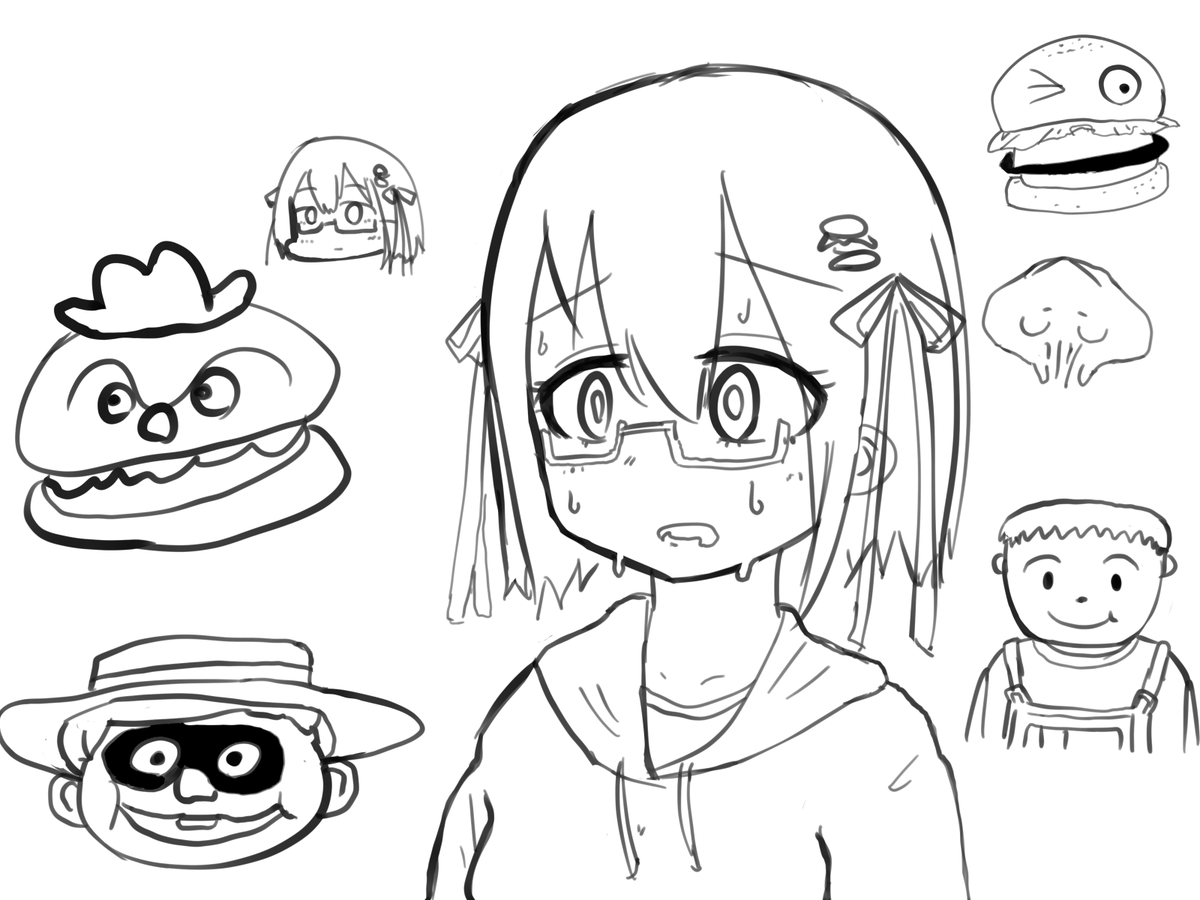 ハンバーガーちゃんと特にまつわらない人たちをかきました