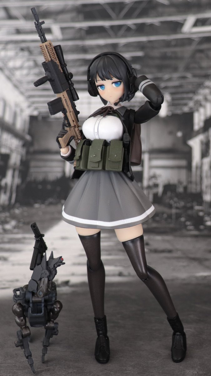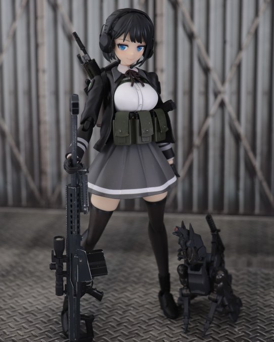 192 630 新作完成! 辺見(へんみ)マヤ 気怠げなスナイパーを創彩少女庭園とリトルアーモリーを使用して製作! 胸部は増量!首や腕の可動域改善、スカートはほぼキットのままで差し替え式。腰関節の改良により匍匐等の狙撃姿勢でもしっかりと銃を構えられます 追加画像はツリーへ 23/07/23 15:47
