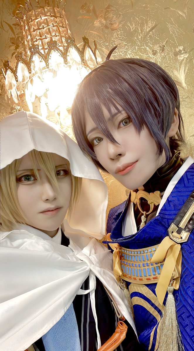 cos おそくほー❣️ 昨日は可愛い今剣と美しい三日月達と一緒にコスカラしてきました 本当にお顔が良かった🫶🏻 今剣:こより(@koyori_huhu ) 三日月:瀬野(@seen0_k ) 山姥切:二千花