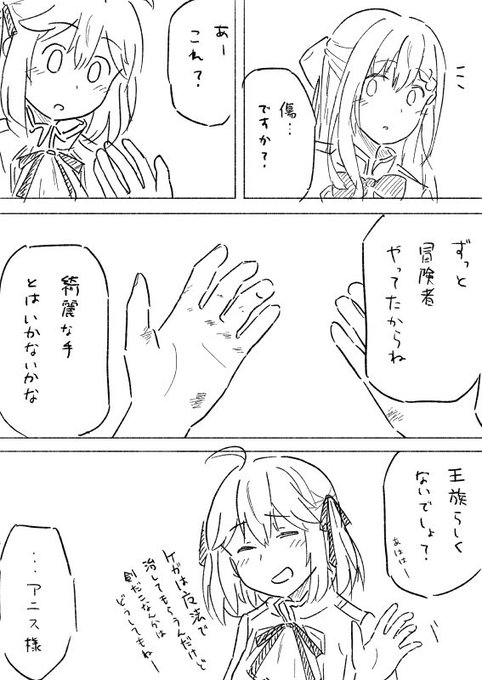 アニスは剣だことかできてそう 7巻読んでて貴族ってだいたいみんな綺麗な手してるんだろうなーと思ったので