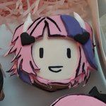 It's my birthday! @Selen_Tatsuki looks like she's smoking something 😂, strategically placed candle hahahaha. I superchatted her about this, commissioned my friend to make a cupcake of her for my birthday! Thank you Selen for your entertaining streams! #artsuki #SelenTatsuki
