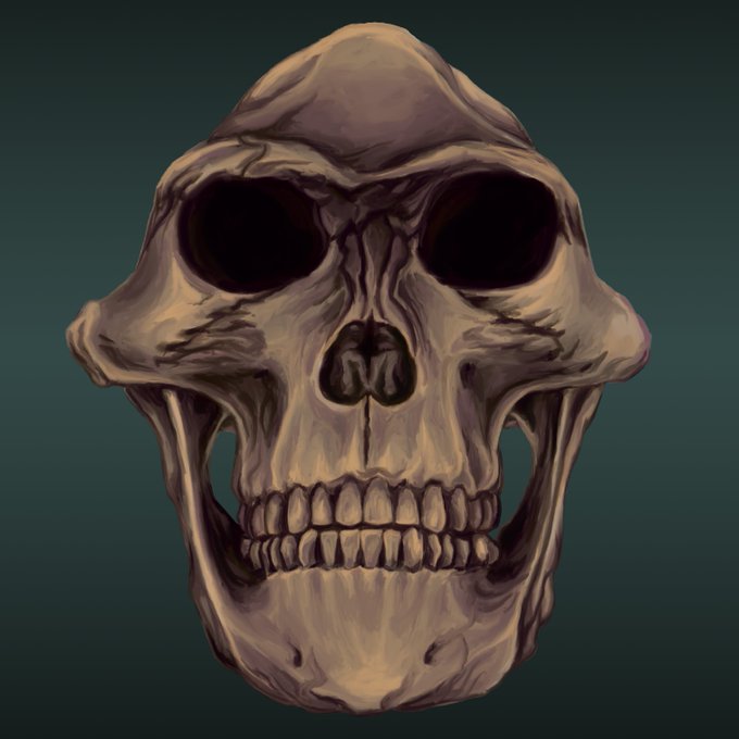 2 1 Here is a detail of the A. afarensis skull study. #australopithecusafarensis #lucy #scientificillustratrion #digitalpainting #paleoart #evolutionarybiology 20/09/03 07:34